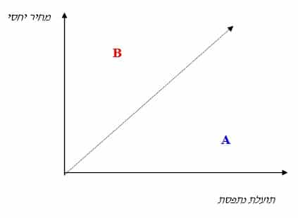באזור A התועלת נתפסת כגדולה יותר ( באופן יחסי ) אל מול המחיר המשולם . ההפך קורה באזור B .